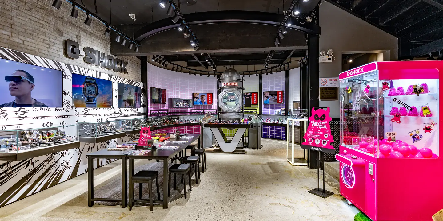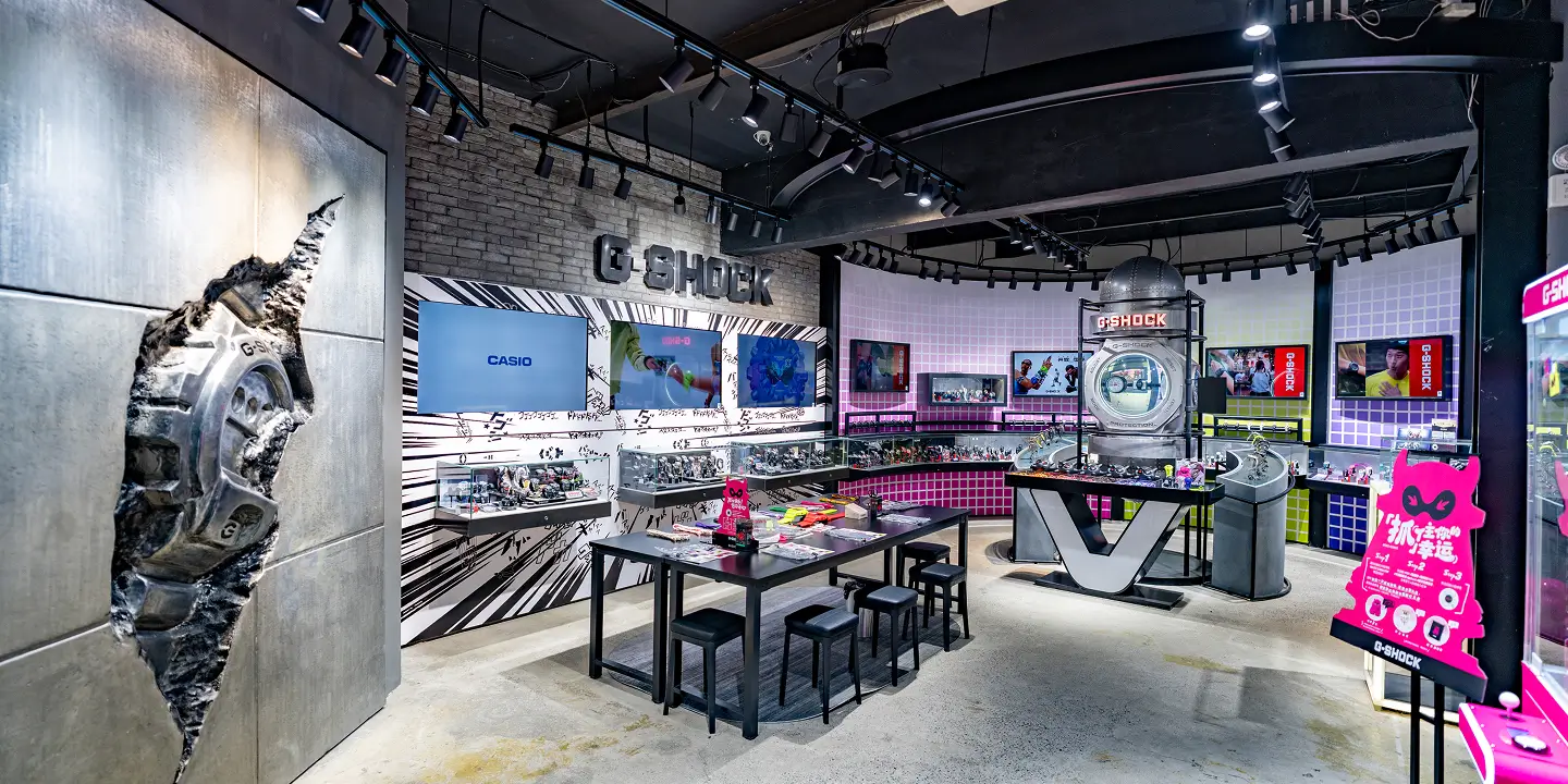 G-SHOCK is a watch brand by Casio known for its shock-resistant construction and bold, utilitarian design. G-SHOCK retail spaces emphasize durability, precision, and a strong technical aesthetic, reflecting the brand’s commitment to performance-driven innovation.