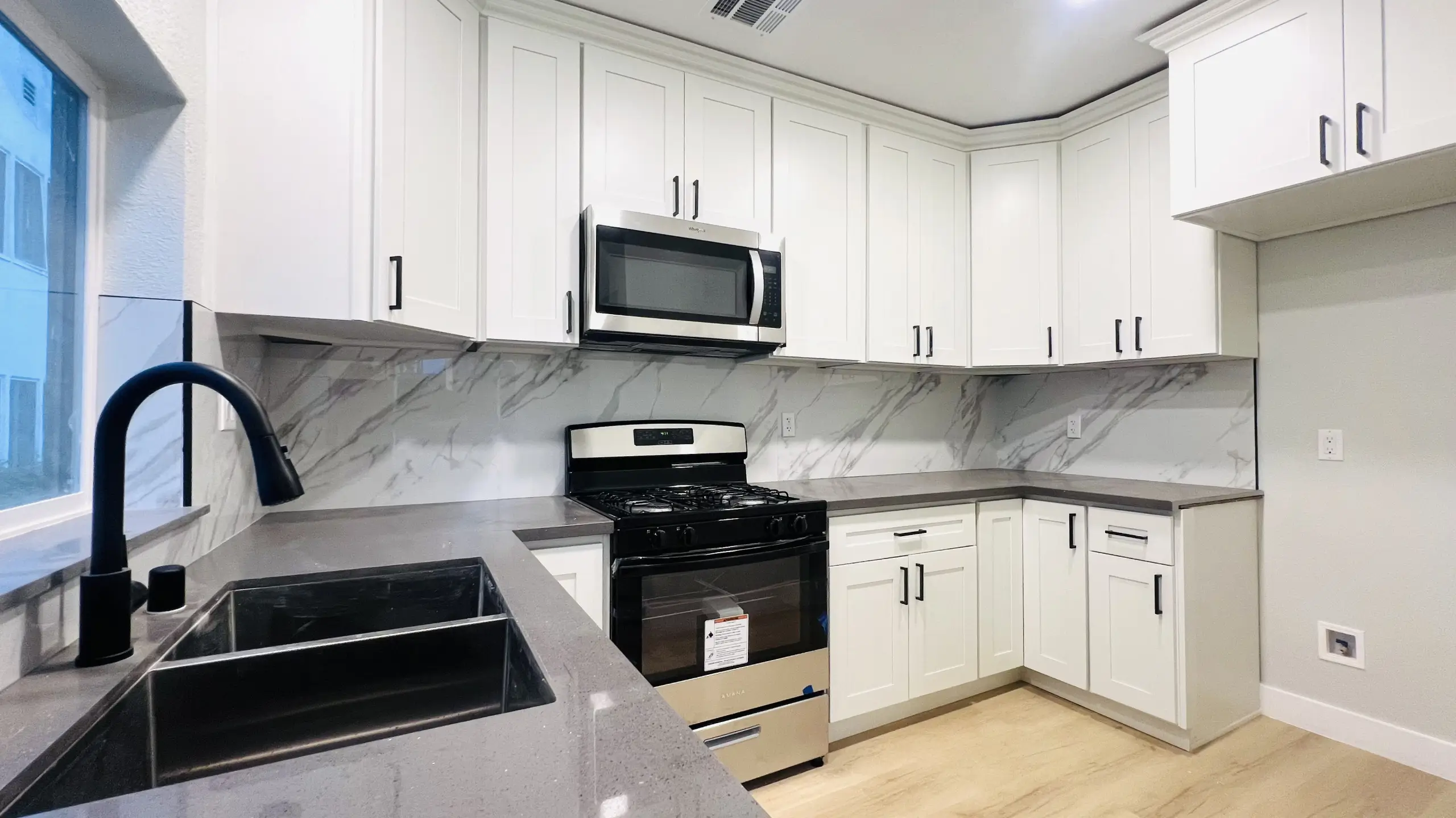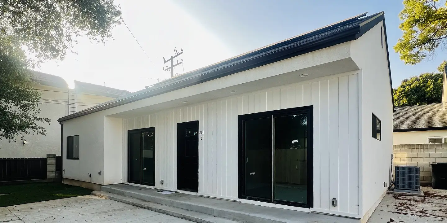 Recent upgrades include a new asphalt shingle roof, new windows and doors, new exterior stucco, new interior drywall, fresh paint, a new 200 Amp electrical panel, a new central HVAC system, a new tankless water heater, new kitchen appliances, and new flooring throughout. The newly built rear house is perfect for additional family members or rental income, with potential for future separate sale.