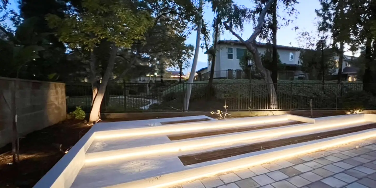 Arrival unfolds through an expansive landscaped frontage, where a long private driveway, meandering stone path, and a gently bubbling fountain lead to a covered front porch and a beveled glass entry door. The entry foyer introduces warm hardwood flooring and sets the tone for the home’s curated palette, with custom tri-tone wall finishes and crown molding carried throughout.