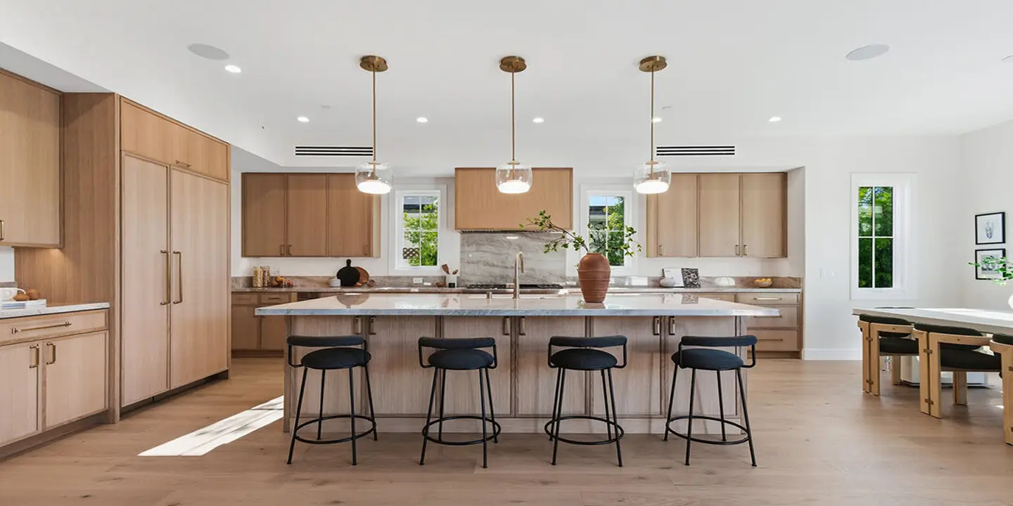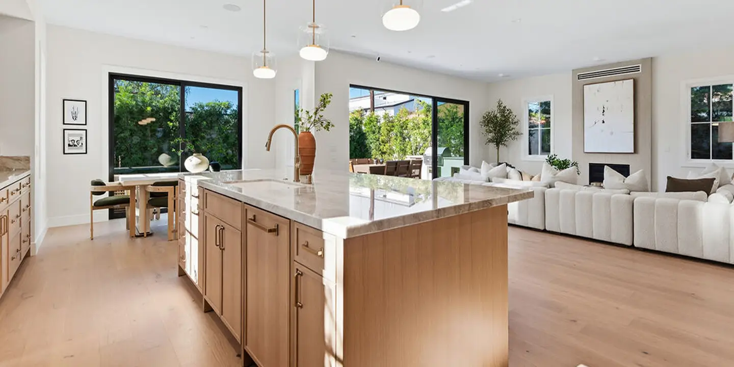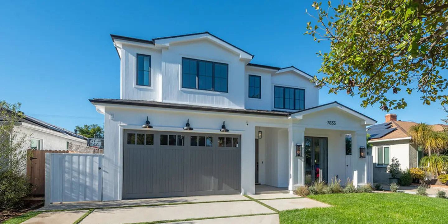 New construction 5-bedroom, 5.5-bathroom, + office/den or possible 6th bedroom home located in the coveted North Kentwood neighborhood in Westchester. This custom-built modern farmhouse is situated on a tree-lined street. Meticulously crafted with modern elegance, this residence combines contemporary design with timeless appeal. Inside, the bright open floorplan features soaring ceilings and an abundance of natural light, with wide plank oak flooring flowing throughout and custom built-ins adding to the home's sophisticated charm. The chef's kitchen is equipped with Thermador appliances, Taj Mahal countertops, designer lighting, custom cabinetry, and a large walk-in pantry. A seamless transition from the kitchen to the dining area, which opens directly to the outdoor space, creates the ideal setting for entertaining.